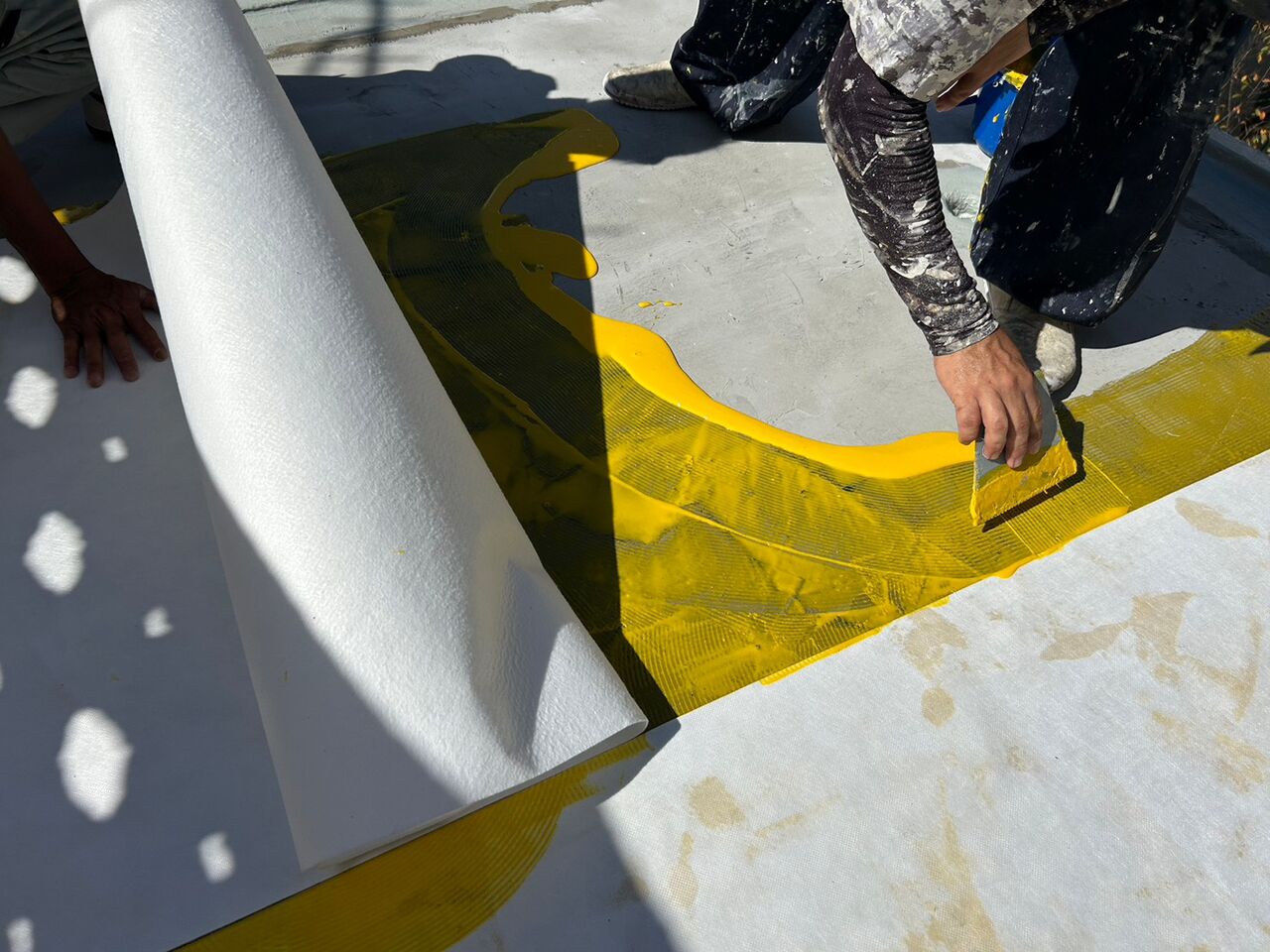 この工法は、コンクリート表面に直接塗ることで