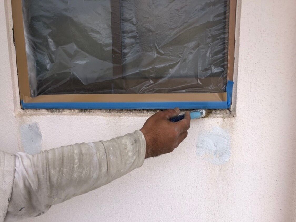 このとき、立ち上がり部分に補強布を貼りながら塗っていくことで、
