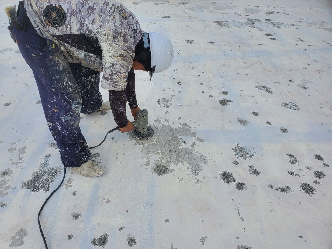 カチオン系セメントで表面を整えて補修箇所も目立たなくします。