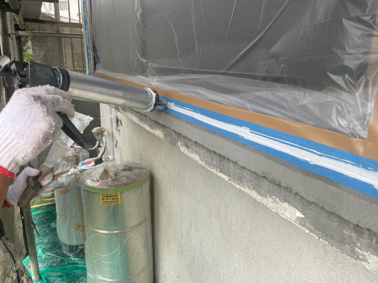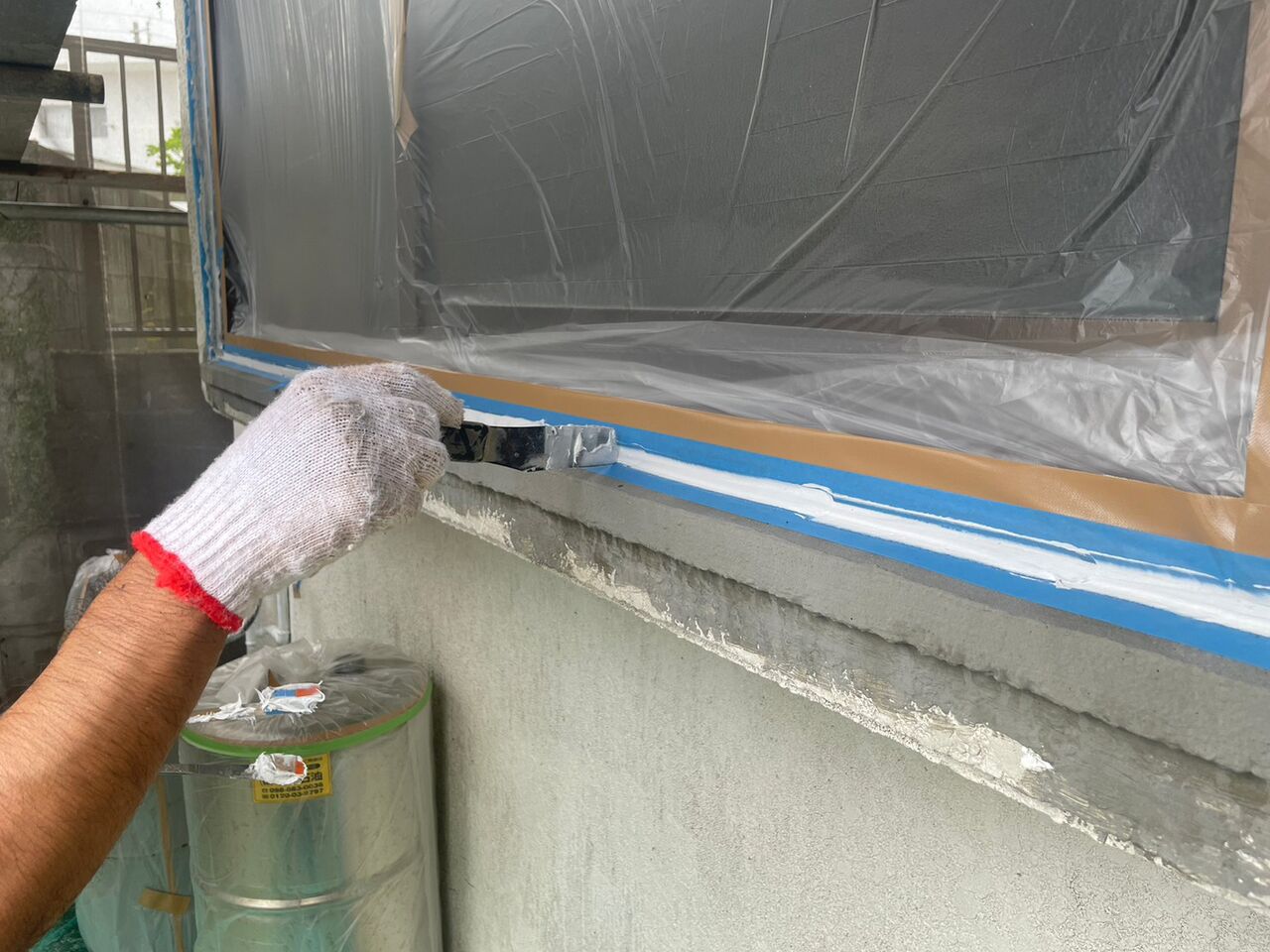 下地とコーキング材の密着性を高めるためプライマー塗装をします!