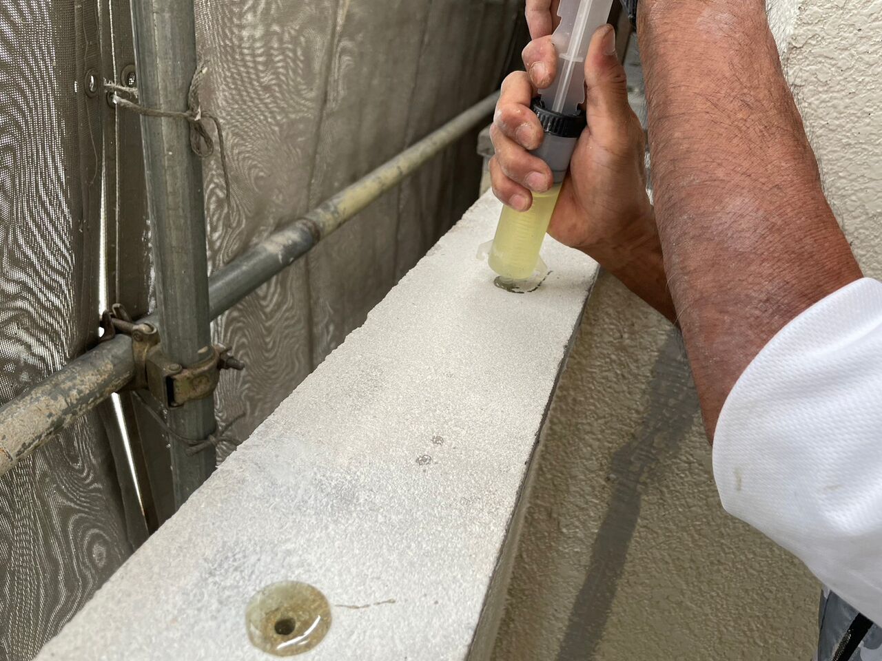 外壁の膨張や地震などの衝撃を受けやすい部分に注入することで