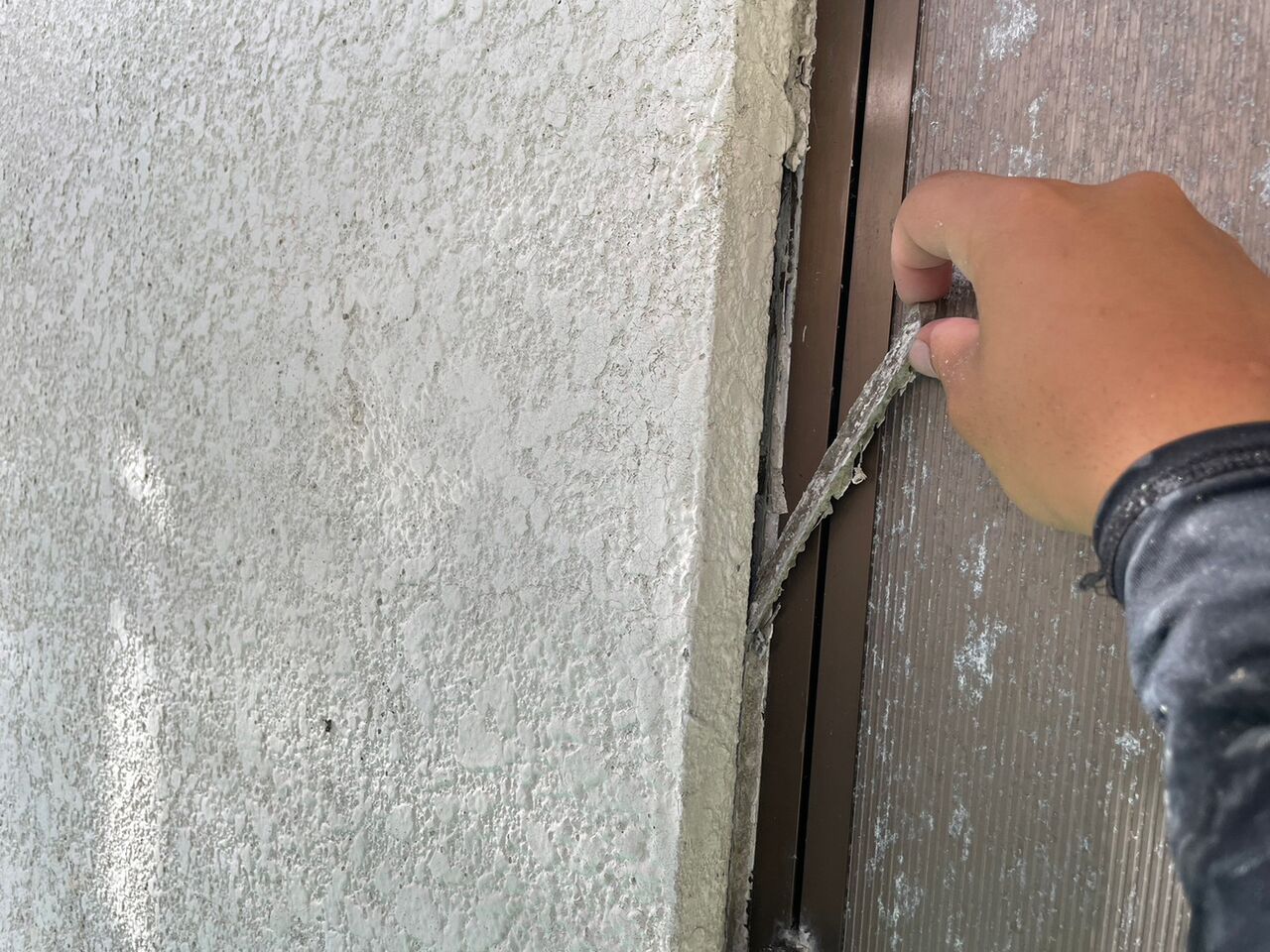 まずは劣化したコーキング材を剥がします。